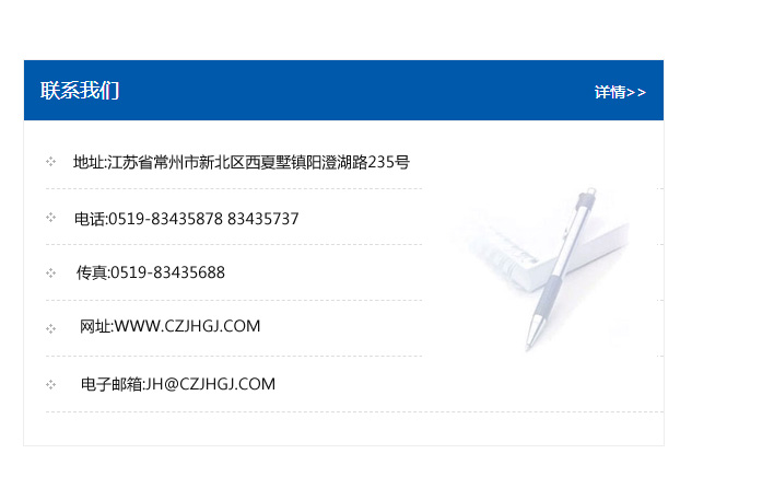 傳真:0519-83435688    郵編:213135    網址:WWW.czjhgj_com.bjhmwn.com    電子郵箱:JH@czjhgj_com.bjhmwn.com
